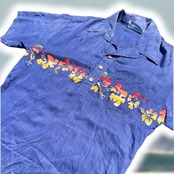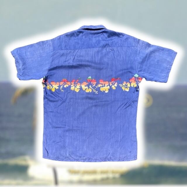 アロハシャツ ハーフボタン オープンカラー ブルー サーフ スケボー スノボー 横乗り オールド