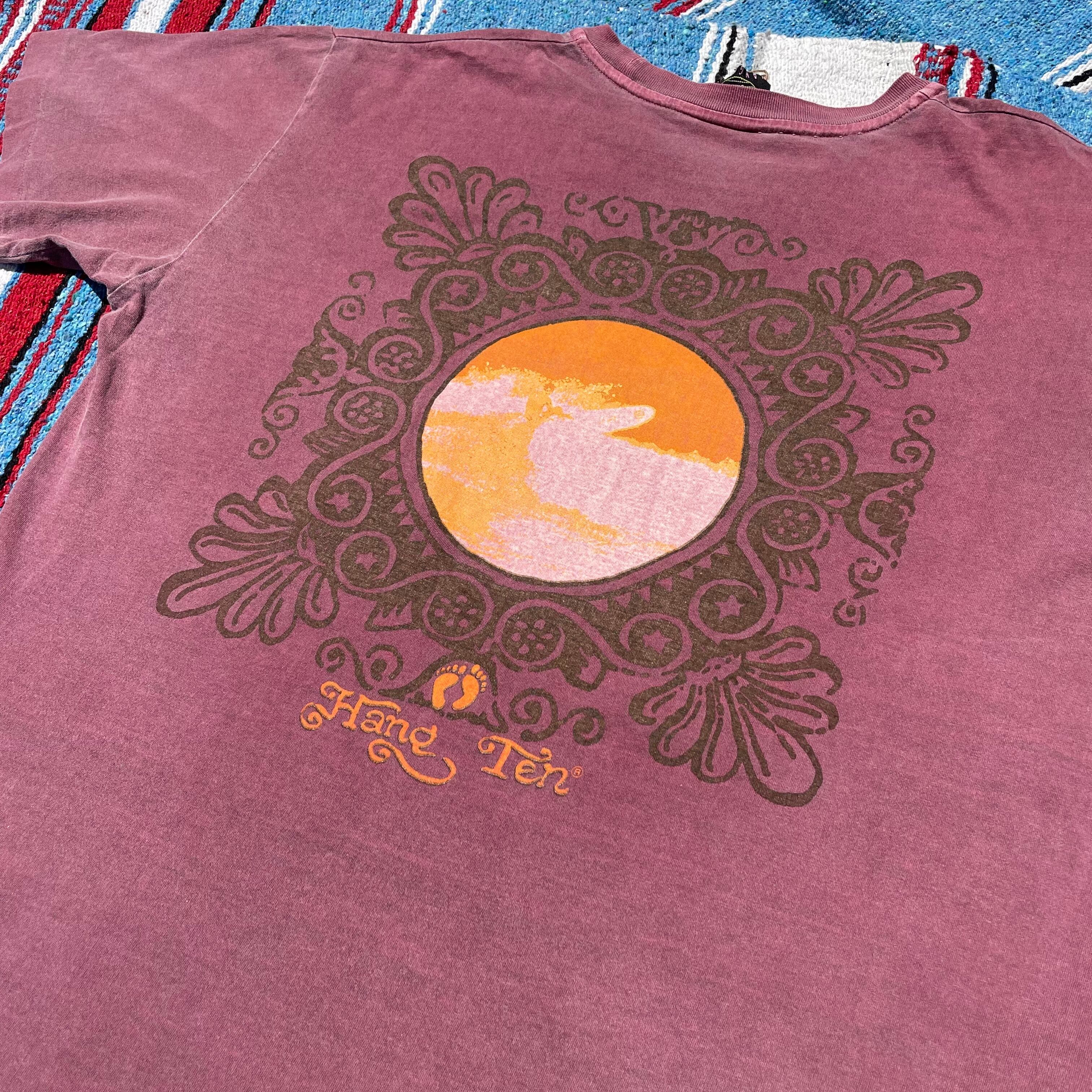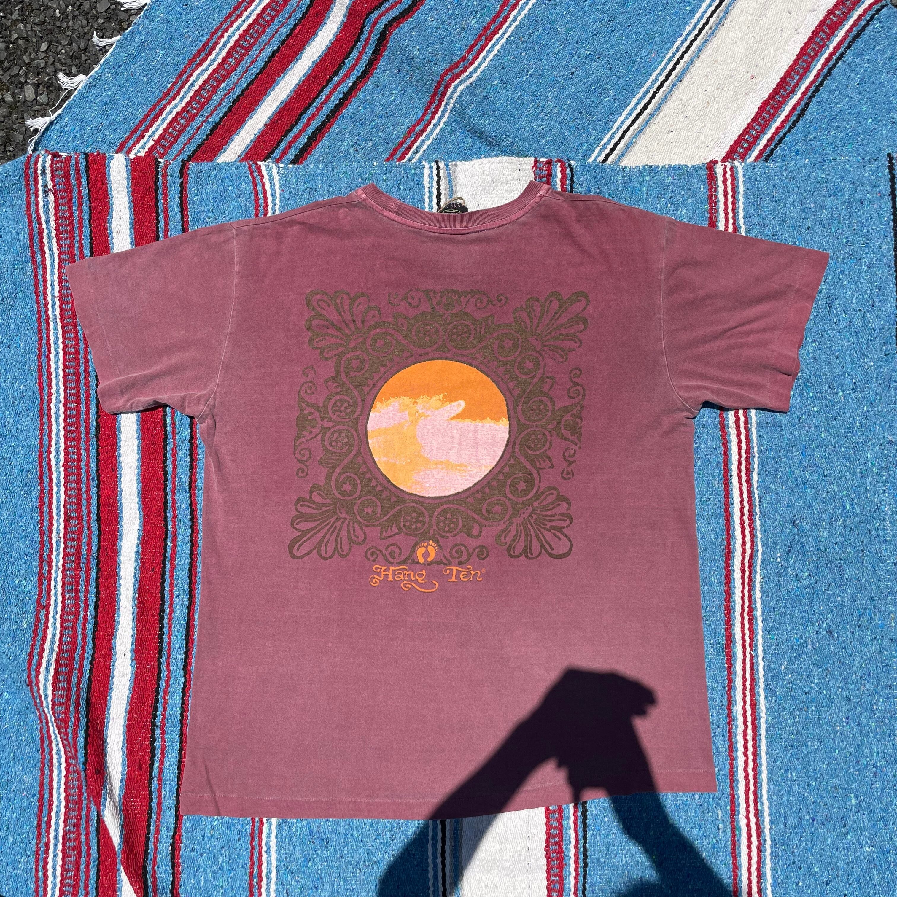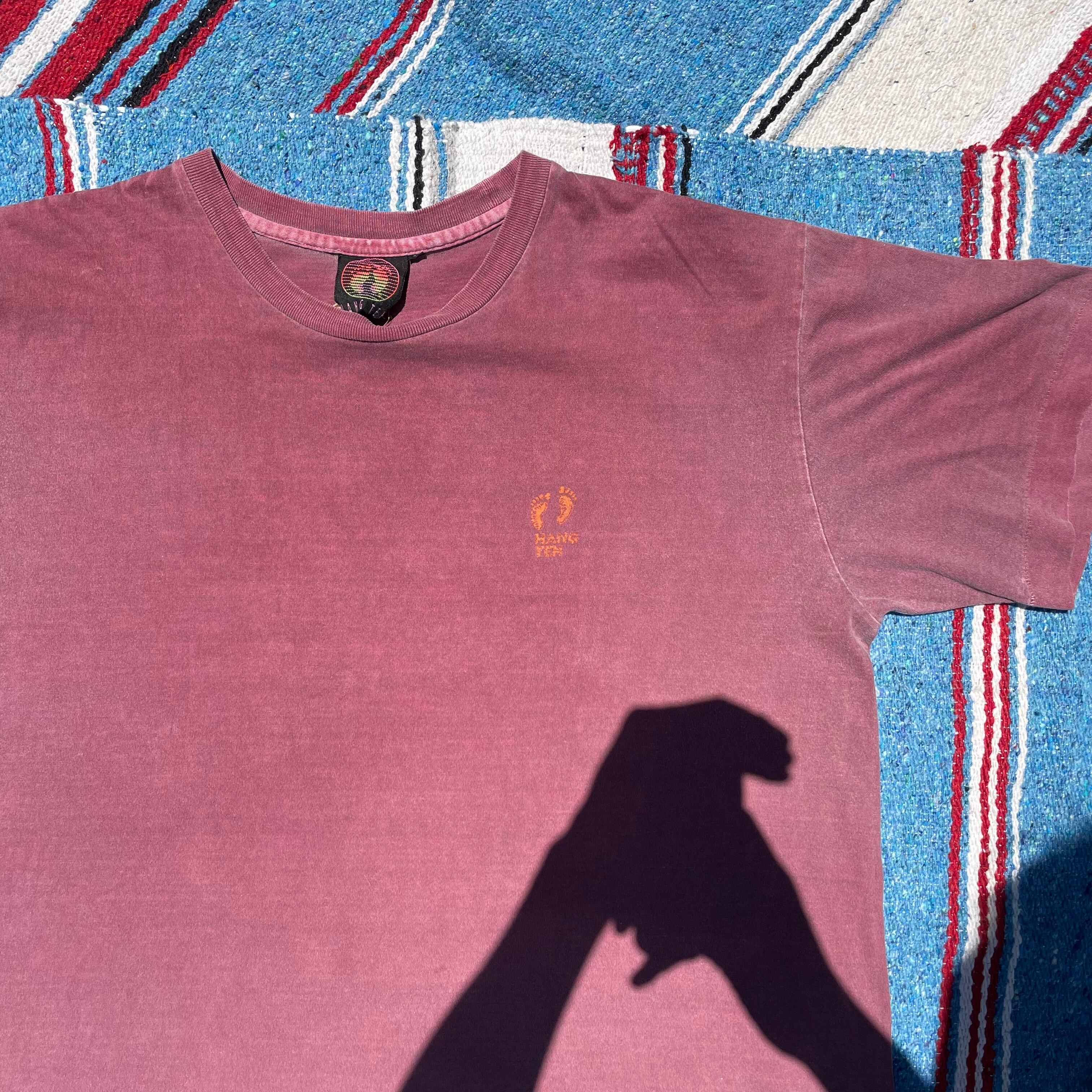 90s HANG TEN / T-shirt / バックプリント / ヘナ柄 / 後染め / ワインレッド / やれ感 / 古着 / USED