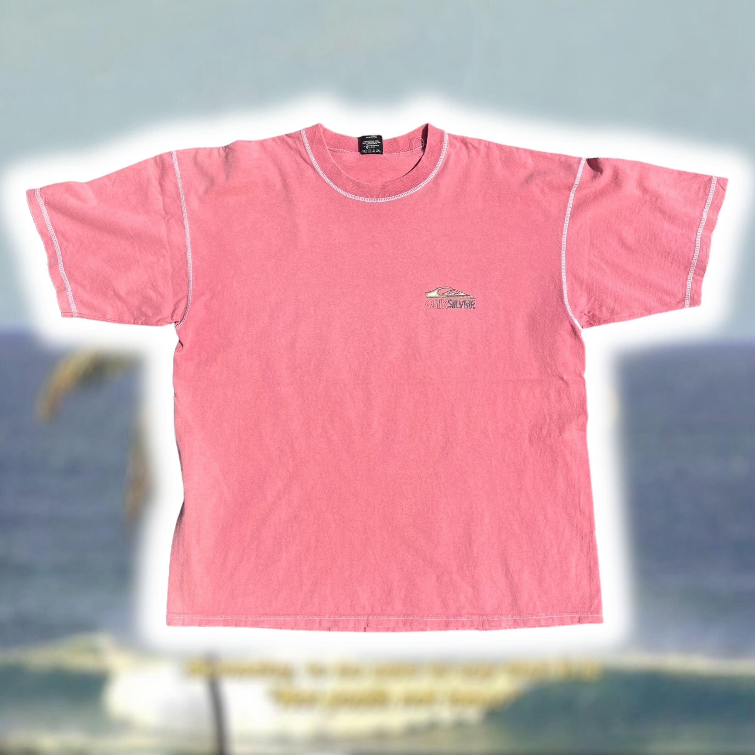 90s QUIKSILVER / T-shirt / バックプリント / ホワイトステッチ /サーモンピンク / 古着 / USED